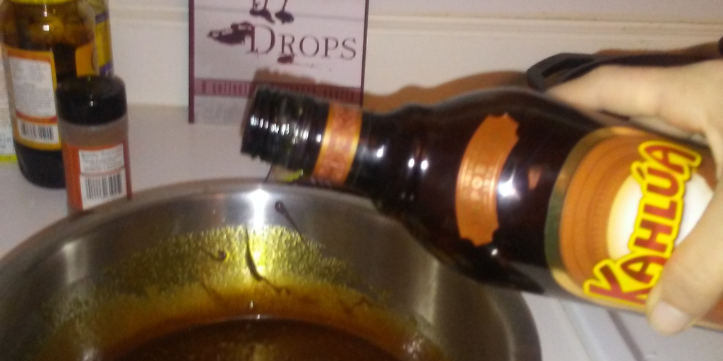The following photos I took periodically throughout the process. Melted butter, dark corn syrup, molasses, cinnamon, and dark brown sugar. Then the melted chocolate. Then eggs and Kahlua. And finally into the oven for 45 minutes. (I overfilled my pie crust, so I had to leave it in for an additional ten. Careful folks!)